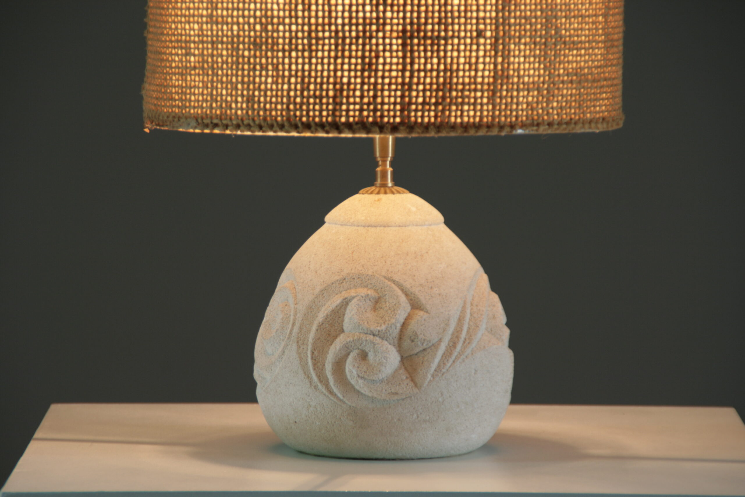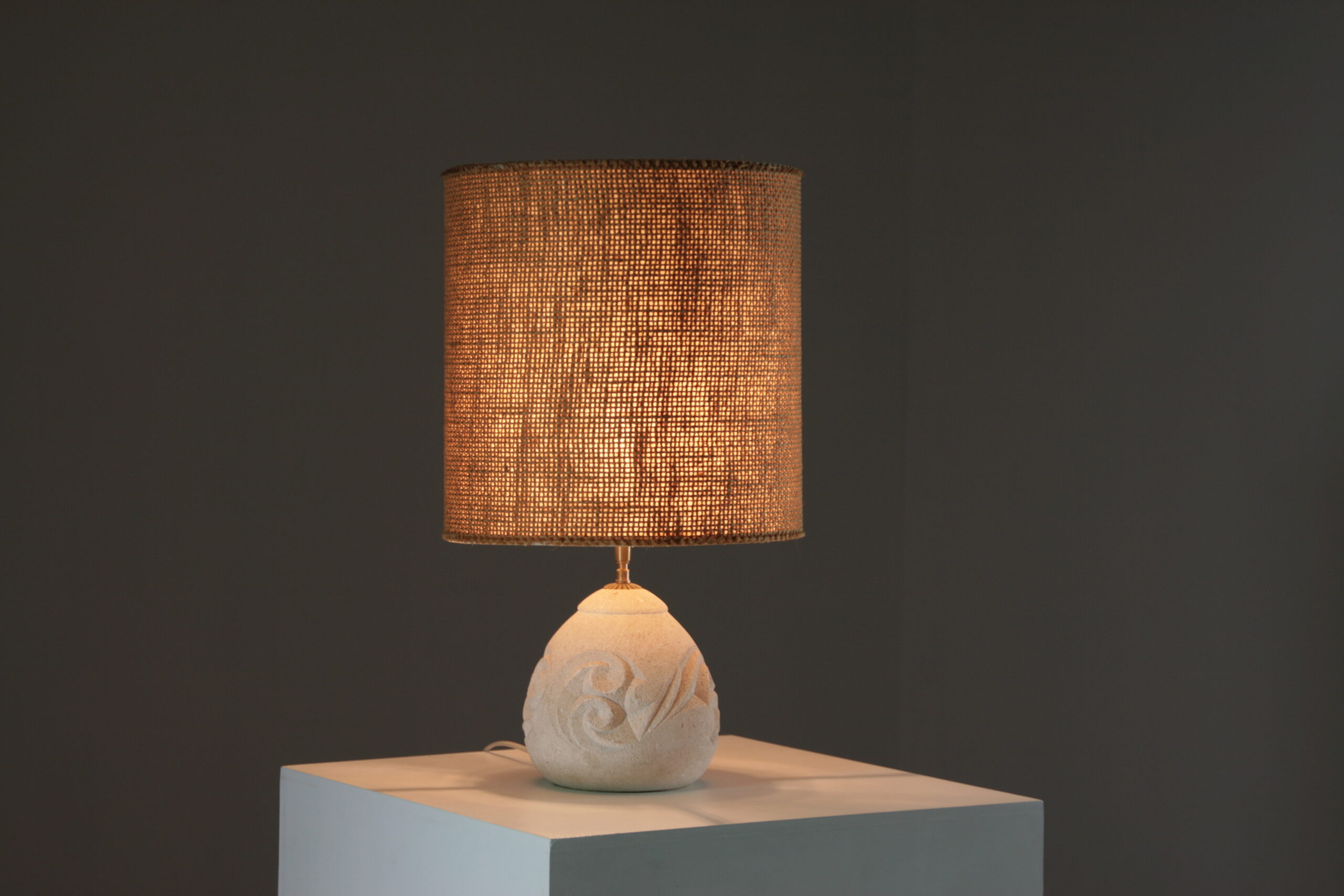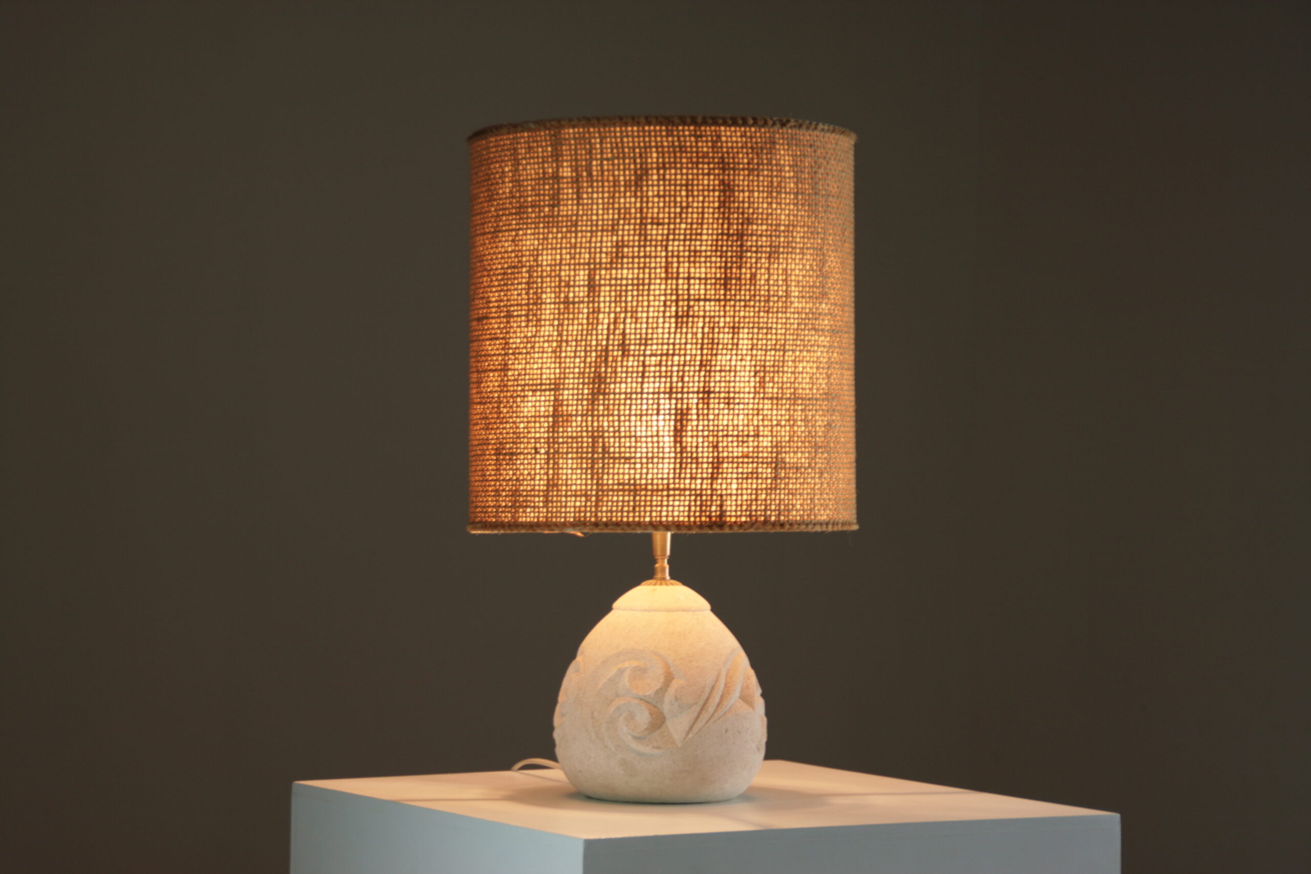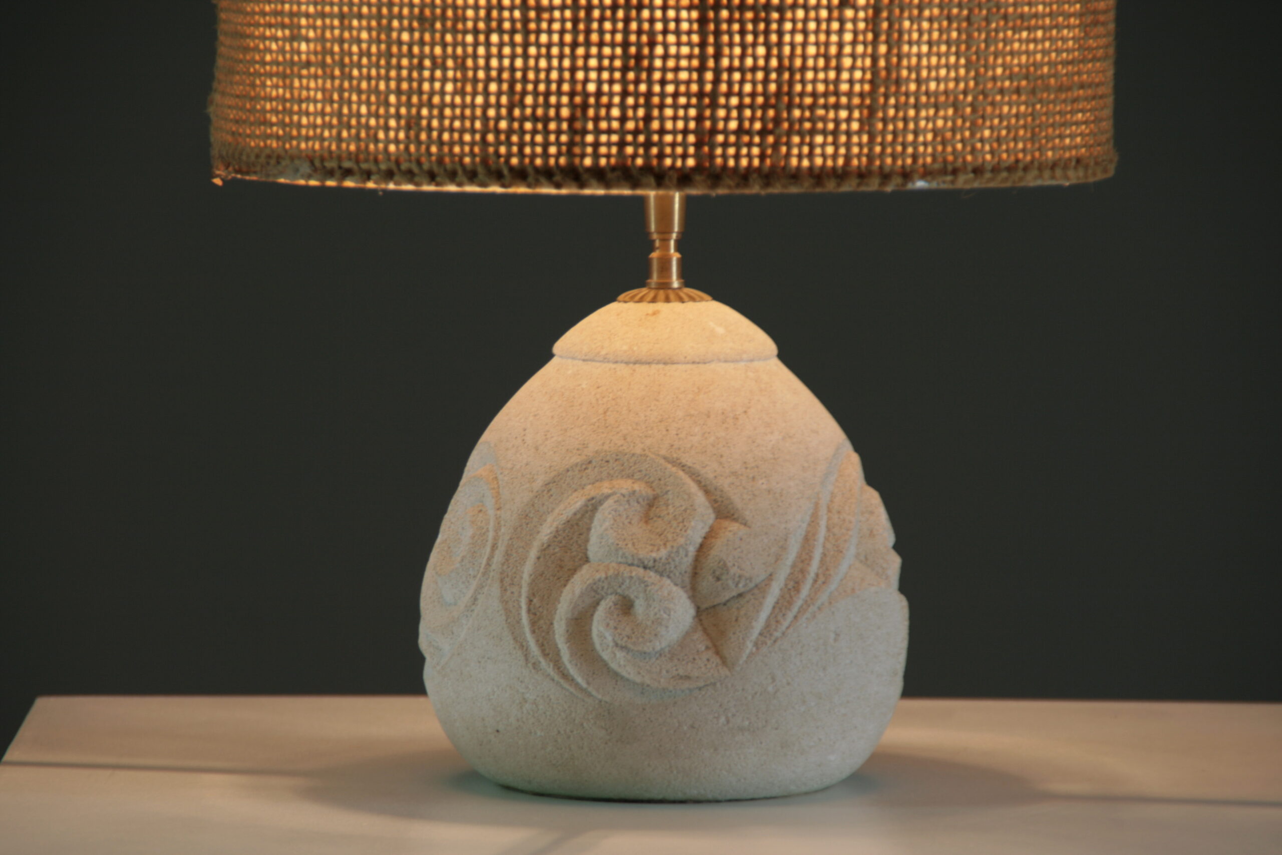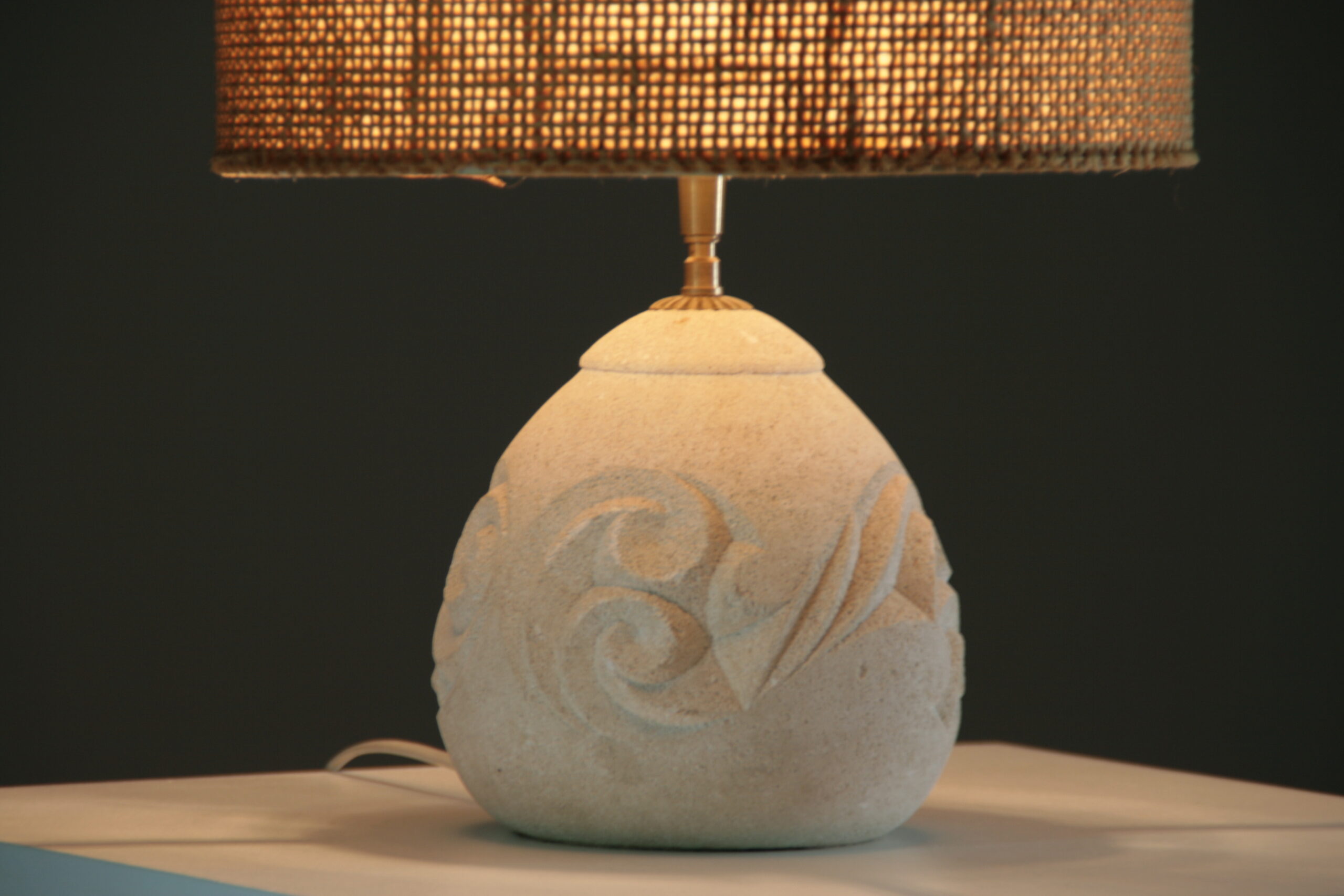 Élégante et sculpturale, cette lampe en pierre reconstituée séduit par sa forme arrondie et son décor en relief délicatement gravé. Inspirée de l’esthétique d’Albert Tormos, elle associe matière minérale et lignes organiques pour créer une pièce à la fois authentique et contemporaine.
