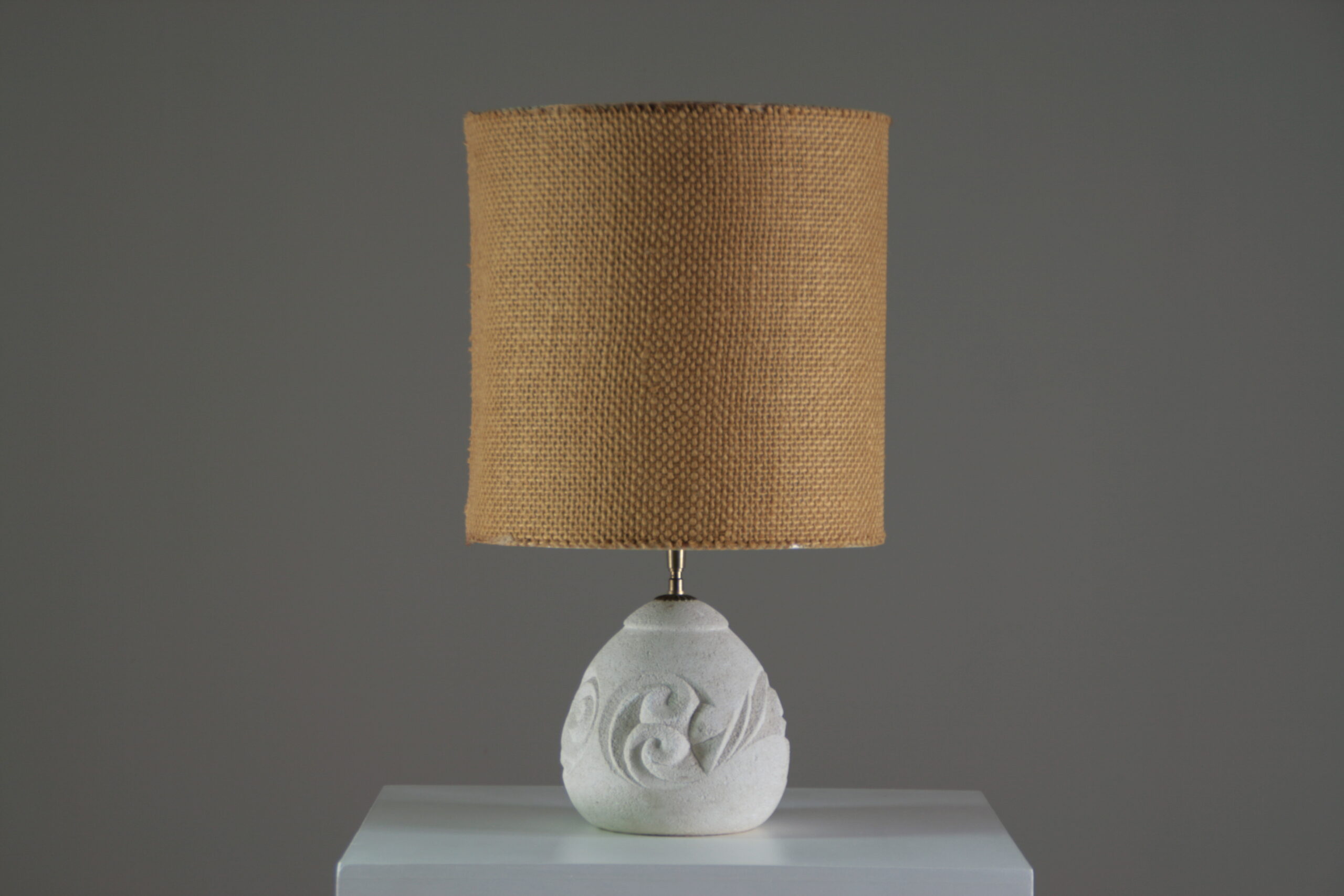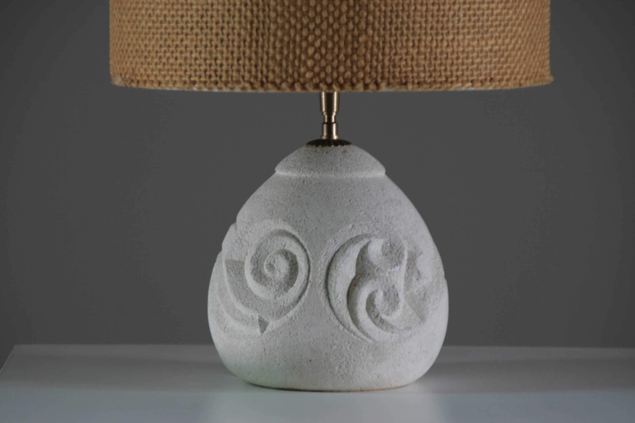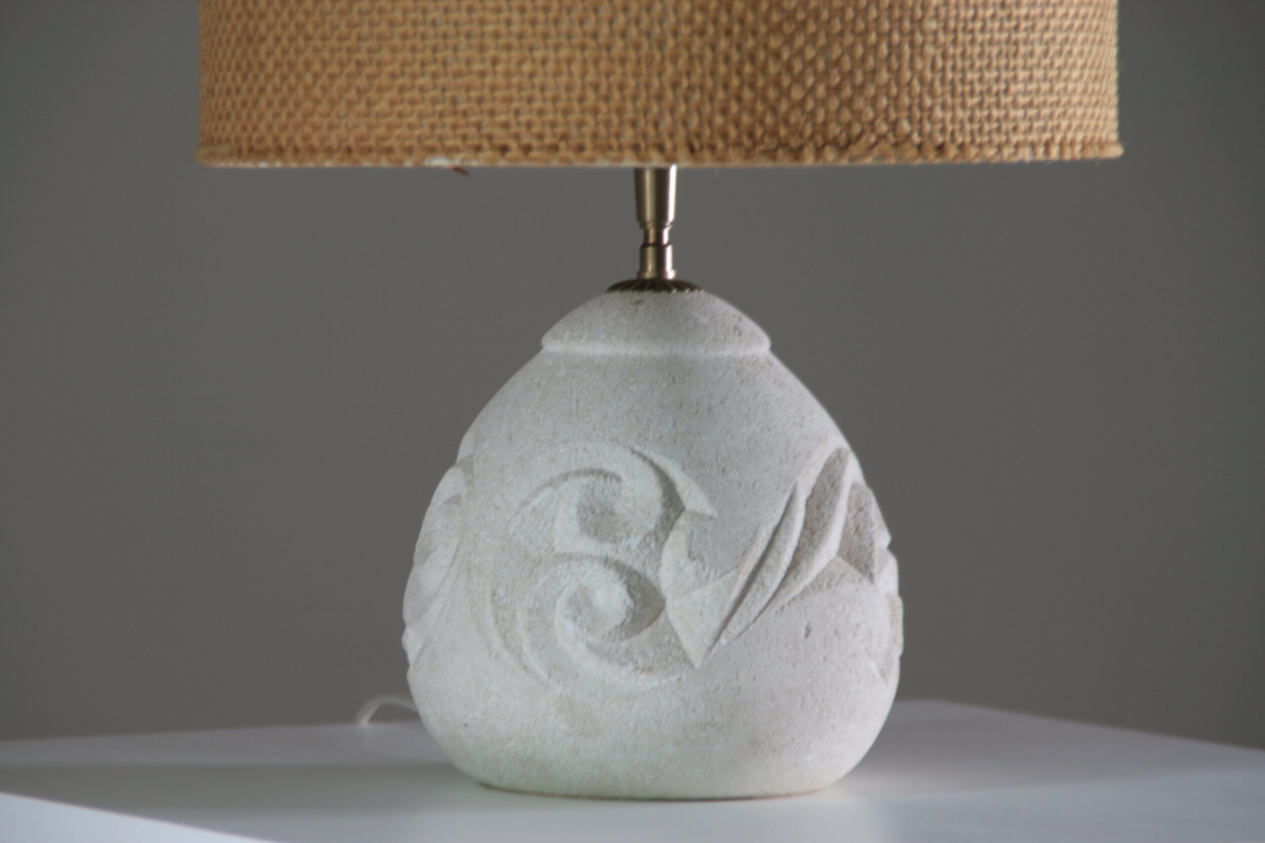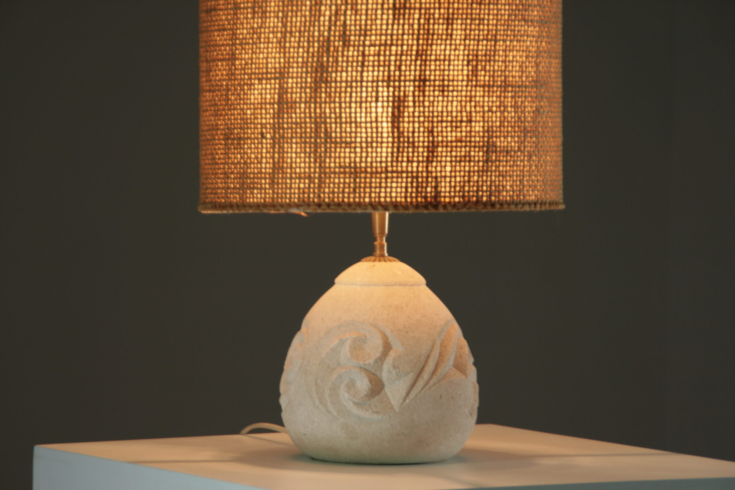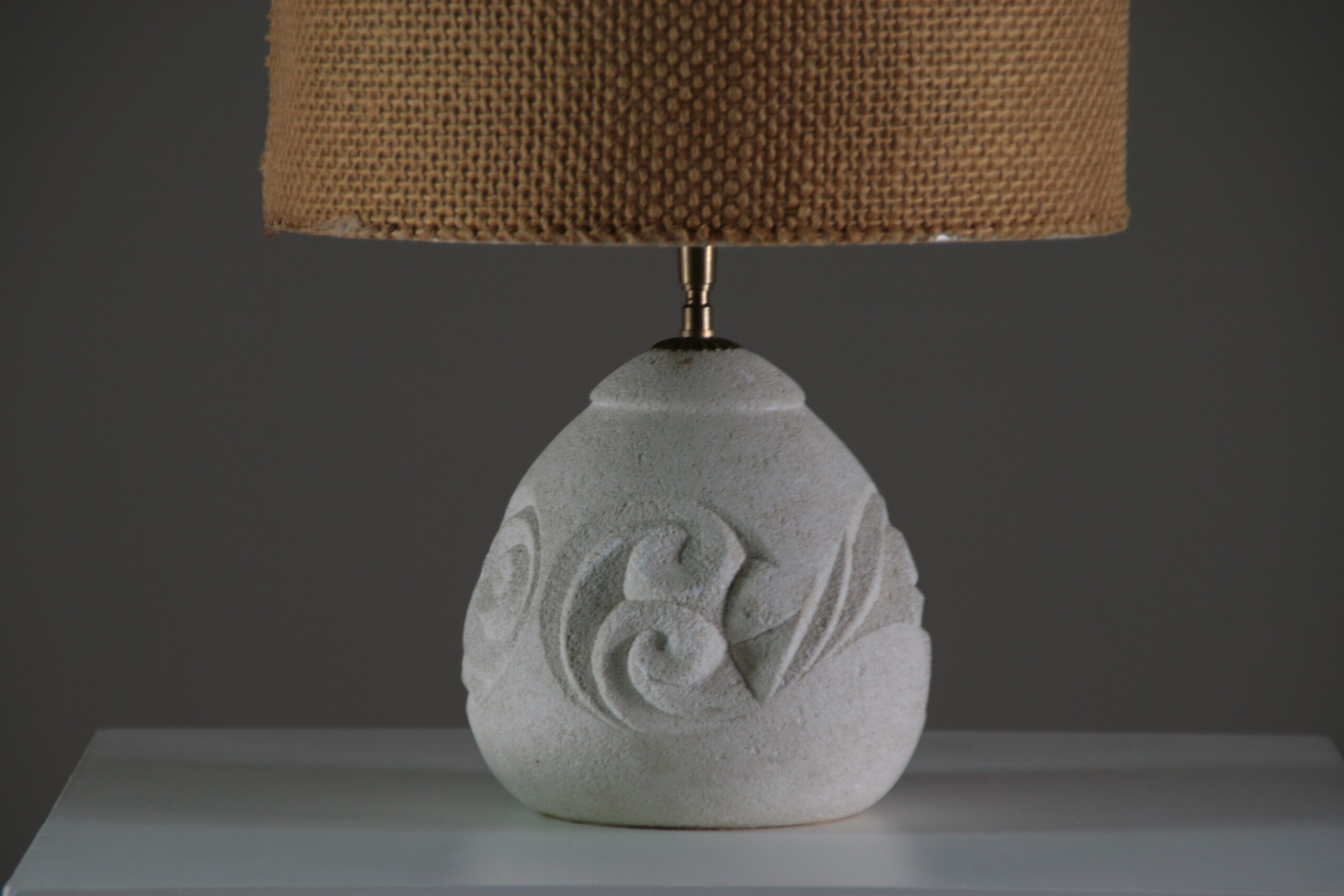 Élégante et sculpturale, cette lampe en pierre reconstituée séduit par sa forme arrondie et son décor en relief délicatement gravé. Inspirée de l’esthétique d’Albert Tormos, elle associe matière minérale et lignes organiques pour créer une pièce à la fois authentique et contemporaine.